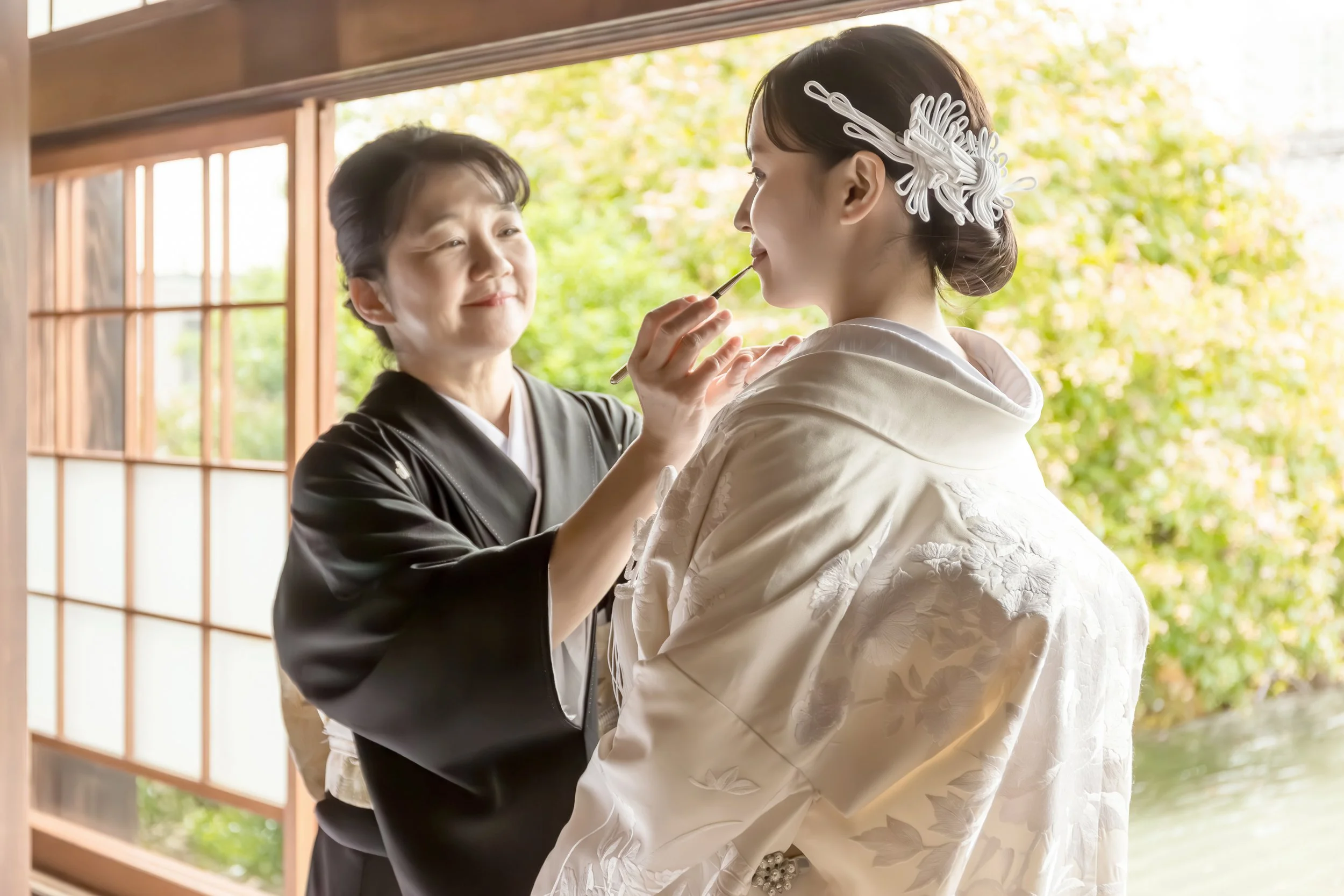 結婚式に和装を着るのであれば、和婚ならではの演出を取り入れるのも素敵です。「紅差しの儀」は、挙式前の身支度のときなどに、花嫁となる娘の唇に、母親が紅筆で口紅を塗ってあげる儀式。古来より赤色は魔除けや厄除けのために使用されてきた色であることから、「嫁ぎ先へ送り出す娘が幸せになるように」「その身に一切の災いが降りかからぬように」と願いを込めて、丁寧に紅を差します。母が娘へ行う最後の“身支度“。母娘水入らずの静かな愛情あふれる時間が流れるでしょう。