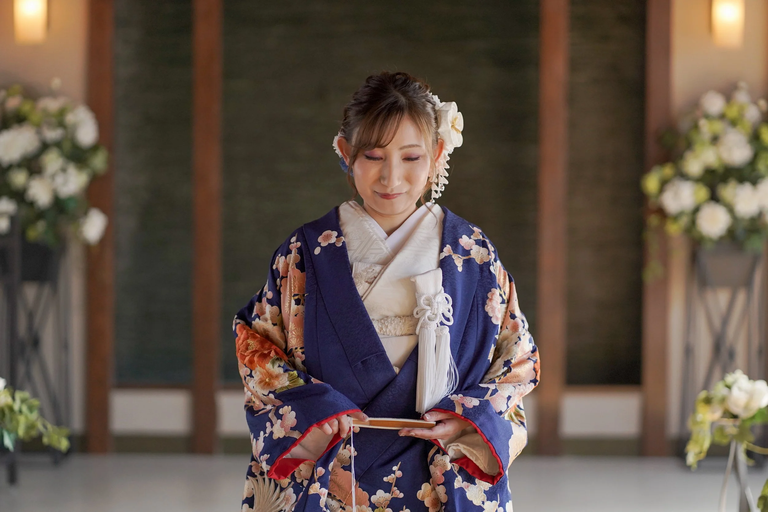 「着付けは何時間持つのか」という質問がよく寄せられます。プロによる着付けであれば、通常6〜8時間は美しい状態を保つことができます。披露宴が長時間になる場合や、二次会まで参加する場合は、メンテナンス用のピンを追加してもらうと安心でしょう。