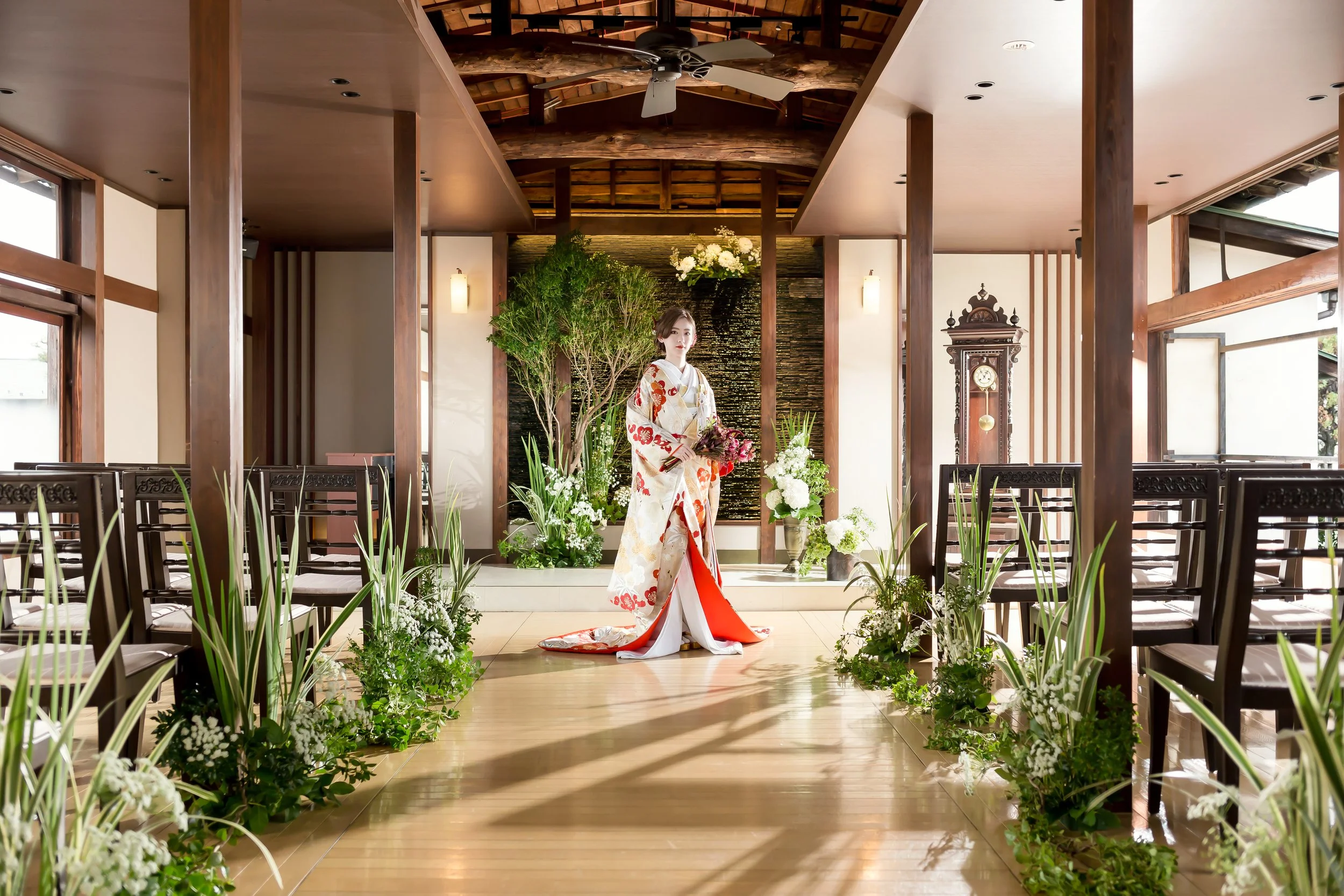また挙式スタイルだけでなく、会場自体が和洋を取り入れた造りの建物だと、ウエディングドレスも和装も違和感なく着ていただけますので、会場選びをポイントにするのもおすすめです。