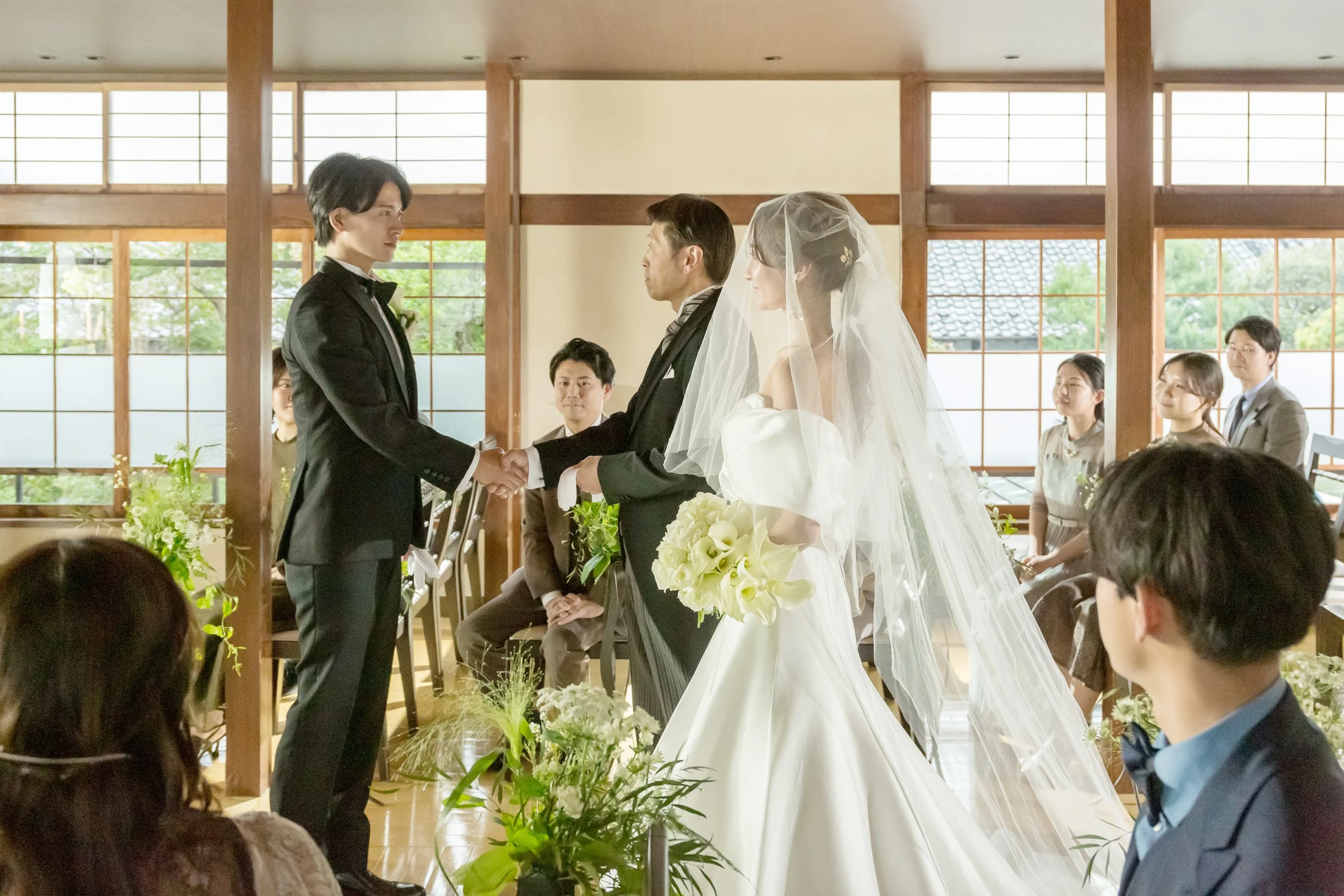 親族入場:ご親族は、ゲストに先立って入場し、指定の席に着席します。