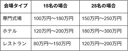 ホテル宴会場:50万円〜120万円(15〜30名)