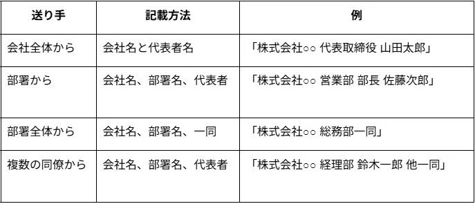 会社から電報を送る場合の差出人名の記載方法には、いくつかのパターンがあります。